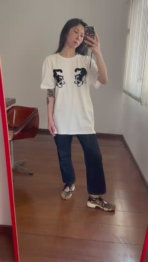 Camiseta de manga curta e gola redonda parte da colaboração entre o Estúdio Carinho x Fekiro© fabricada em malha 100% algodão.